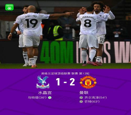 北京时间11月30日英格兰足球顶级联赛第13轮,水晶宫主场对阵曼联。上半场马特塔点球二触重罚破门。下半场,B费...
