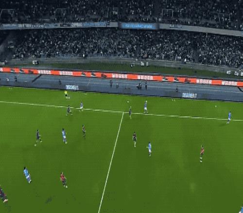 第33分钟,德布劳内操刀,骗过索默,一蹴而就,但这一次的射门造成了德布劳内大腿后侧肌肉严重拉伤,被换下场。