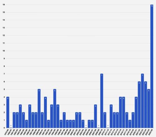 据美媒Automatic统计,在NBA历史上,联盟第一周打出40+次数排行榜上,本赛季的16次已经大幅刷新了历史纪录。此前最高的纪录是7次,分别是2009-10赛季以及2022-23赛季,不过不及本赛季的一半。