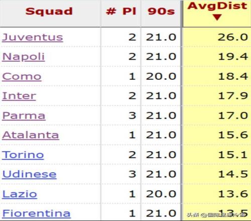 到1月中旬,同样是“最后一道防线距大门的平均距离”,国米如今的数据是17.9码(16.4米)已经不再是意甲第1,只能排在第4,在五大联赛里,国米也跌出了前10。