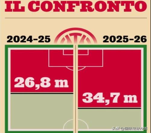 国米意甲第2轮输给乌迪内,第3轮输给尤文时,相关数据都超过了30码(27.5米)。10月28日,国米客场对阵那不勒斯时,相关数据是28.0码(25.6米)。