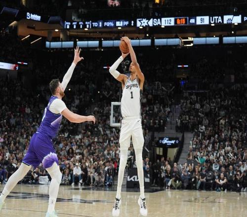 马刺力克爵士,文班亚马今天外线三分投开了。首节他就砍下13分,上半场他12中7(三分9中5),罚球2中2砍下21分7篮板1抢断1盖帽。
